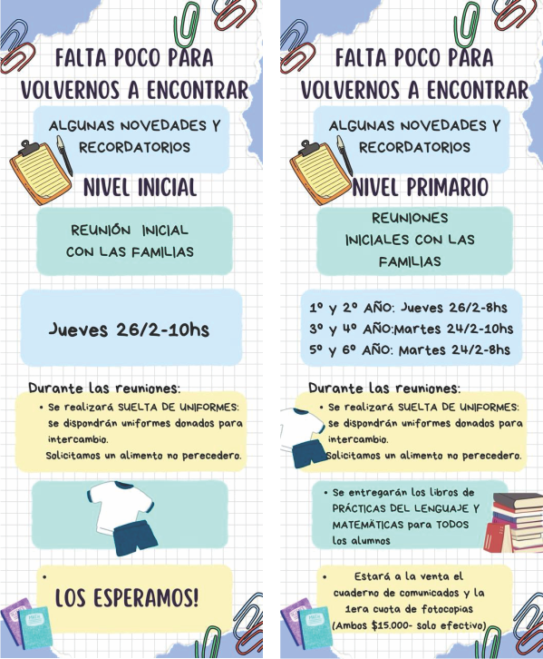 Portada » Blog » 2026 | Reuniones, temas y listas de materiales Inicial y EP