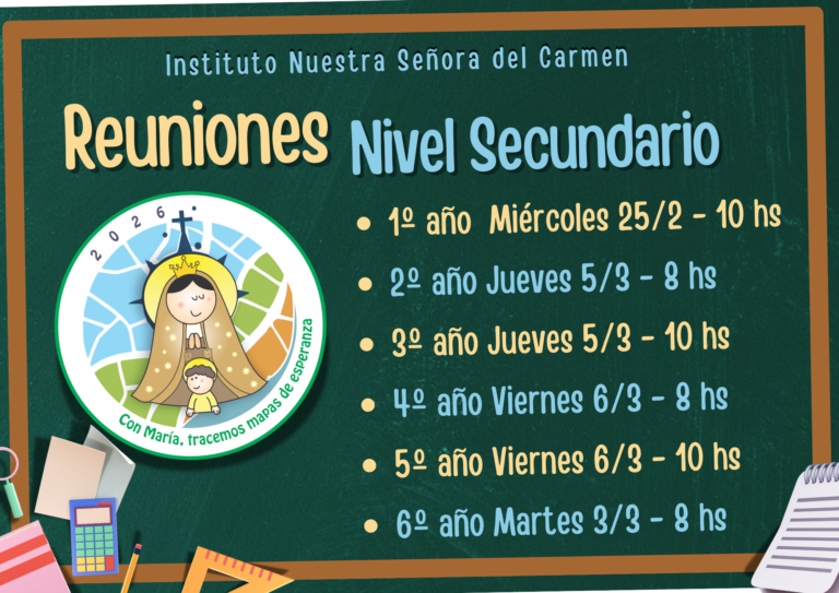 Les ofrecemos las fechas y horarios de las reuniones informativas para las familias del Nivel Secundario en la que se tratarán cuestiones referidas al inicio del Ciclo Lectivo 2026 y el nuevo Régimen Académico: